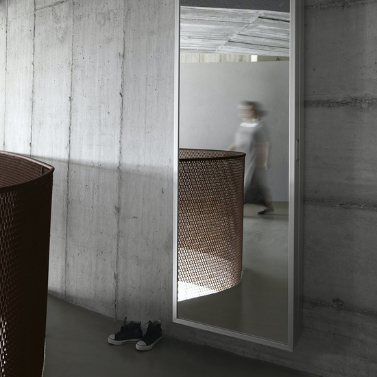 In the BoxOne version, the door has a full-length mirror and opens with an external handle, in a choice of black or natural Presot® hide or soft opaline silicone. Like the previous version, the door opens to 180° and has concealed hinges. Compact and minimalist, Box and BoxOne are designed to complement any room in the home, from the bathroom to the entrance hall and the bedroom.