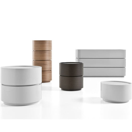 The collection ranges from the stackable 1-drawer version to the 2-drawer module produced with a one-piece carcass and the chest of drawer options, featuring an elongated design for extra drawer storage space. With two diameters and a whole host of finishes to choose from, complemented with new options, the range caters to different material and colour requirements and gets the creative juices flowing, allowing users to have fun producing different combinations.