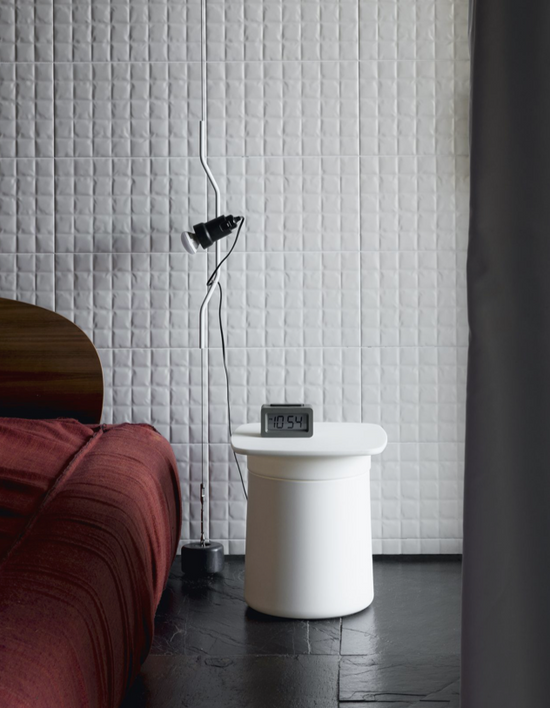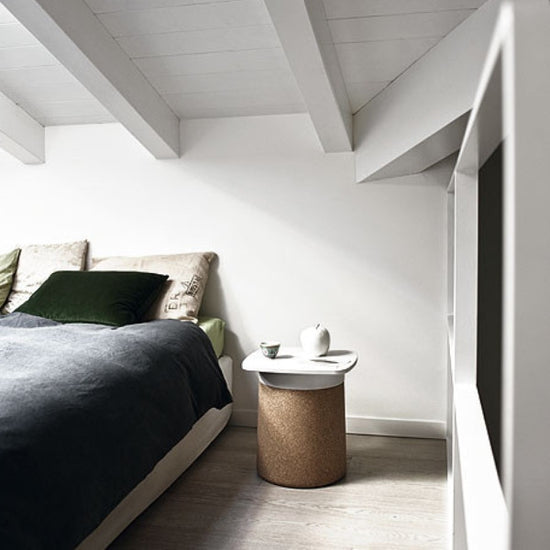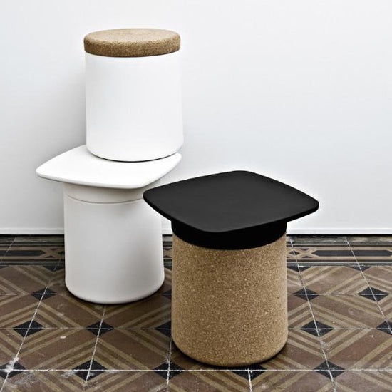 A small table, a bedside table, a storage box and even a seat: Degree is a versatile furnishing accessory. Its unusual and playful shape recalls the academic world, the hat that American graduates throw into the air during the ceremony that marks the conclusion of their university degrees. Made of black or white polypropylene, it is also available with a cork coating, a material with a warm familiar style that resembles a bottle cap.