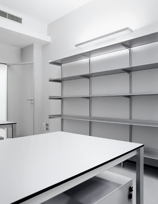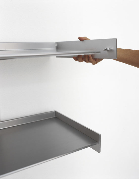 Dot — a versatile system of sheet metal shelves and aluminum uprights