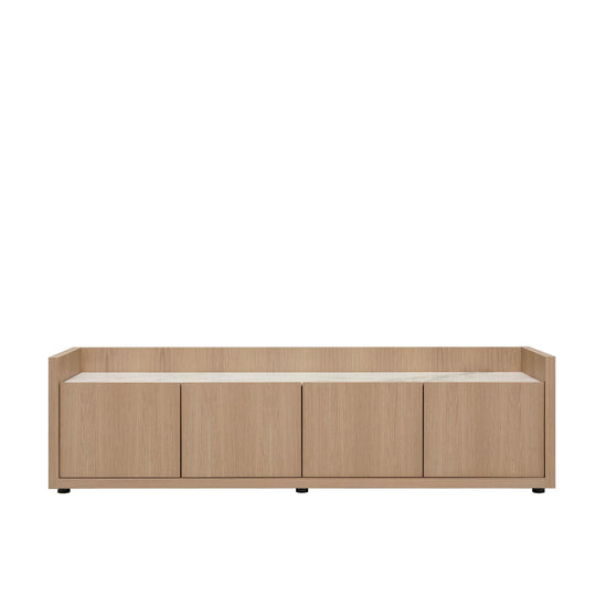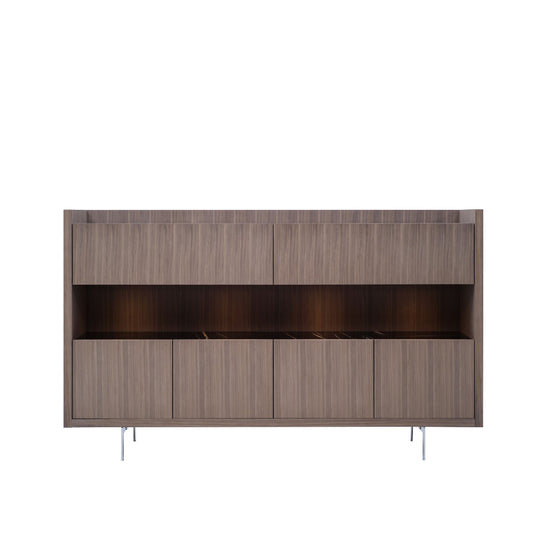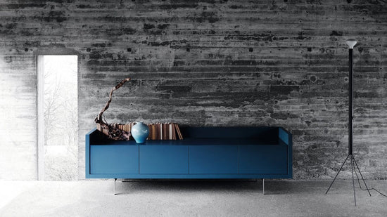 Ideal for the dining and living areas, the Liagò collection consists of two low storage units with doors and drawers and a tall storage unit with hinged or flap doors. Defined by clear lines and increased thicknesses, these units are inspired by the Venetian architectural element (an outdoor loggia made of wood, often featuring a marble floor) after which they have been named. Just like a building, the 50mm-thick frame of the units hides a functional soul: side and back panels are assembled by means of a “folding” mechanism to create an internal compartment, allowing the passage of electrical cables and other elements. This means that the units can accommodate power supply cables and connections for televisions, monitors, lamps, speakers and other wired devices.