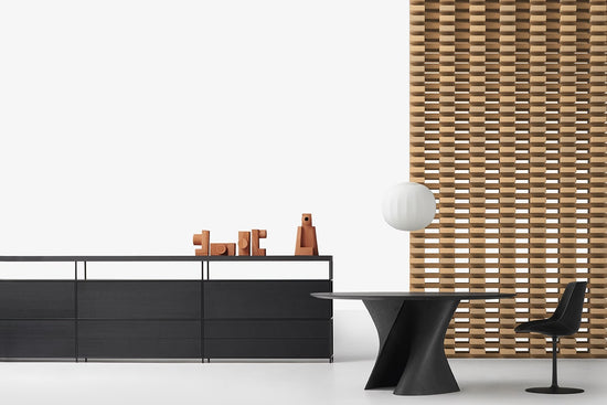 Double-sided, this sideboard can also be placed in the center of the room to divide the spaces.