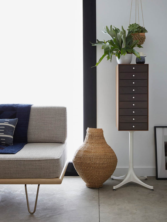 Inspired by the minimalism of Japanese design, the Nelson Miniature Chest has nine, slim, solid wood drawers hand-fitted and stacked atop one another. This design jewel from George Nelson will safely house your most treasured possessions.