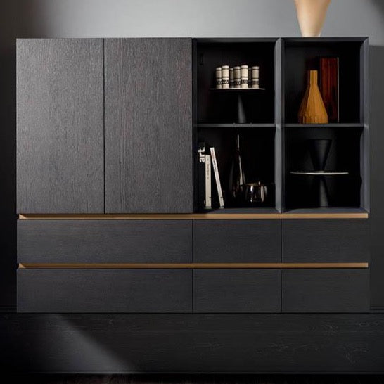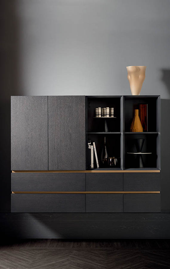 This collection of sideboards is an offshoot of the extensive people system range. The distinctive mitre-folding, which results in seamless carcasses and easy-grip edges, gives the sideboards an extremelye polished appearance in their use of clean lines and formal simplicity. Its multiple expressive and composite possibilities, change and expand in space and time, to satisfy the demand of quality of people’s future houses, thanks to the superior quality of the materials and to the extreme care we put in assembling the pieces.