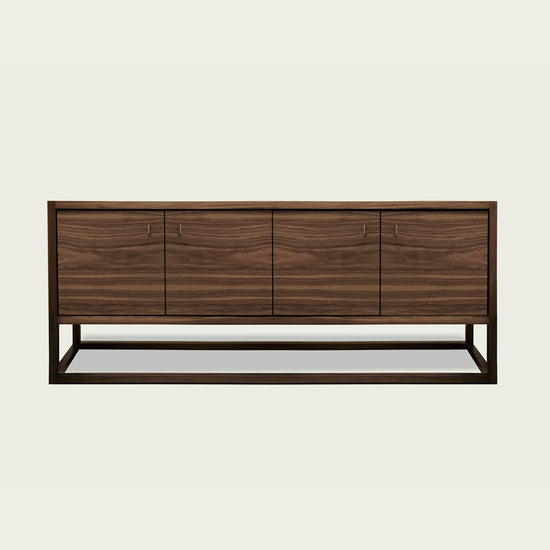 The Petits Fours design combines the strength of a solid wood frame with the beautiful grain patterning of veneered panels. The soft-close doors conceal adjustable glass shelving for use as a sideboard or as elegant storage in a living room or office. A complementary design to other pieces in the Petits Fours collection such as the Tallboy and Dresser.