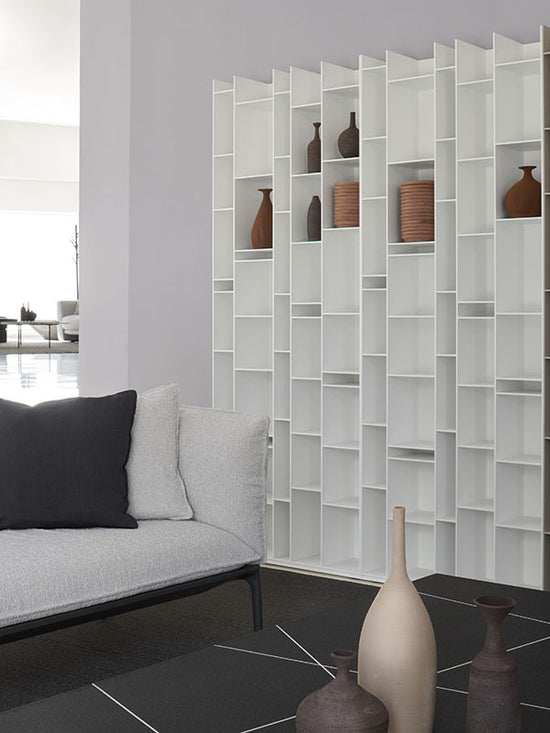 A product that, with its geometries, favours lightgames, while with its modularity adapts to any living space, from the widest to the most reduced ones. Over the years, Random has extended its family, changing the concept of storage. For instance, with Random Box and Random Cabinet, objects can be both stored and shown off, while modules of different depth give an effect of considerable dynamism.