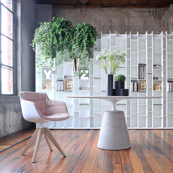 A piece of furniture that, when it was born in 2005, revolutionised the concept of bookshelf, turning it into a design sculpture. This is the visiting card of Random by Neuland Industriedesign, created all white at the beginning. Then, it came in different variants up to the colour of the 2C-3C release.