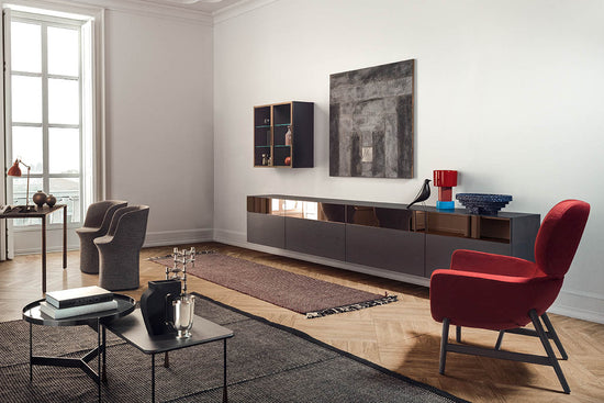 Simplifying everyday movements, creating contours that command order and harmony: Spazio is the very essence of functionality. With close attention to details and a love of textures, it offers a range of modules, sizes and finishes unrivalled in their variety and flexibility. Spazio is ideal for every room in the home and has something to satisfy the tastes and requirements of everyone. The latest additions include marbled glass, mirror glass, backlit shelves, back panels in materico marble, new metal finishes for handles and the luxurious leather model.
