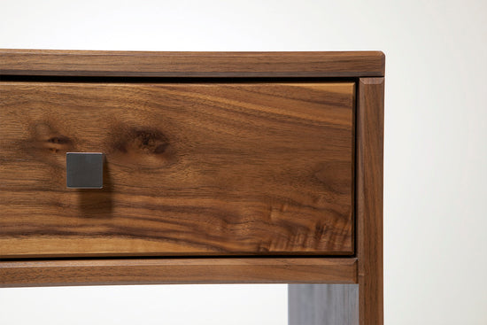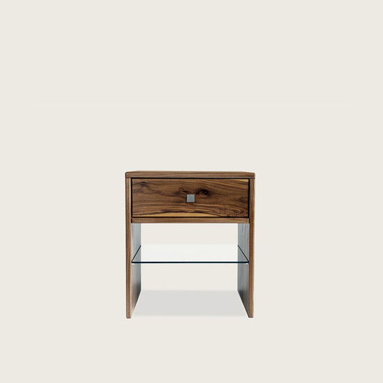 Our Touch family of designs emphasizes the beauty of solid wood through the striking grain patterning on the surfaces and the finger-joint detailing on the edges. This side table features a spacious drawer for concealed storage and an additional shelf, making it ideal for the bedroom.
