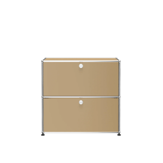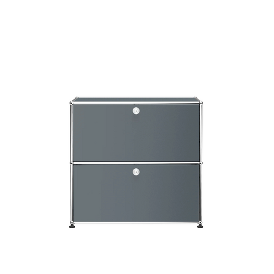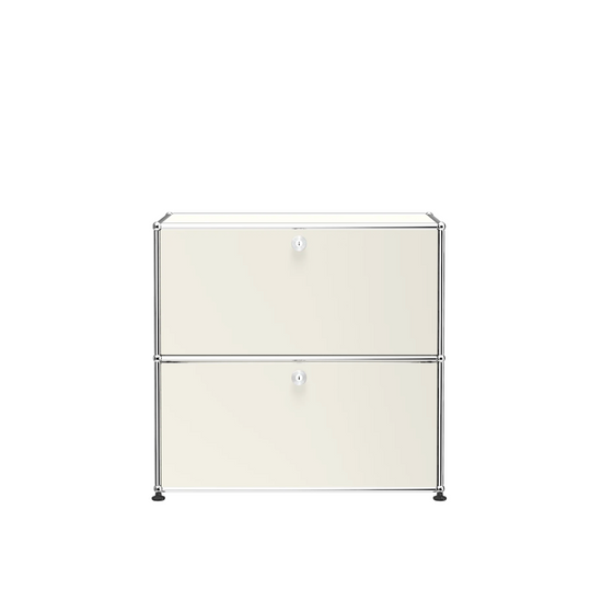 A functional home office storage unit with one drop-down door and one extension drawer with letter filing. The doors and drawers lock with the twist of a coin. Available in 14 standard surface colours.