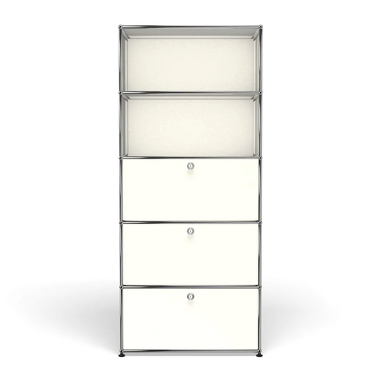 Designed by Swiss architects Fritz Haller and Paul Schaerer in 1963. Made from powder-coated steel and chrome-plated steel tubes, the USM Haller system is built to last for generations and adapt as your needs change. Made in Switzerland.