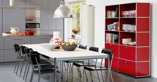 Designed by Swiss architects Fritz Haller and Paul Schaerer in 1963. Made from powder-coated steel and chrome-plated steel tubes, the USM Haller system is built to last for generations and adapt as your needs change. Made in Switzerland.