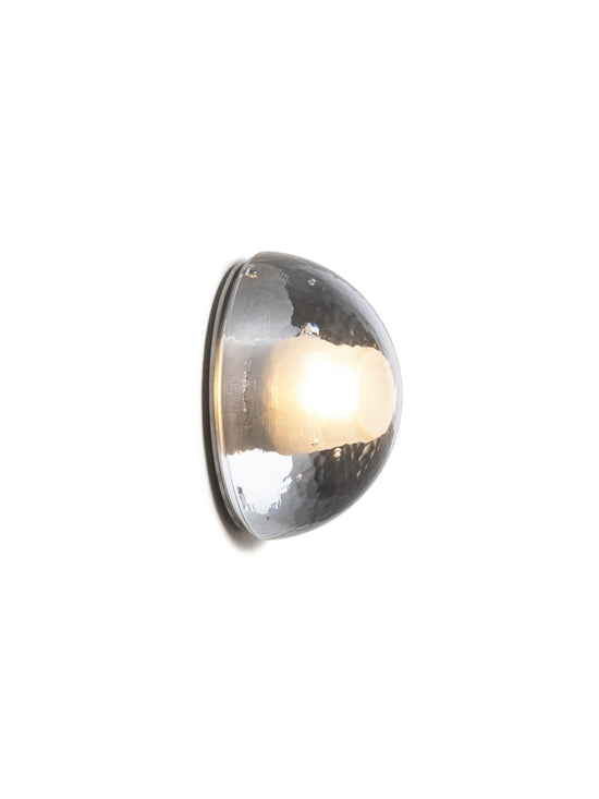 14s/sp is a cast-glass half-sphere with a frosted cylindrical void that houses a low-voltage Xenon or LED lamp. The pendant is designed to be mounted on either the wall or the ceiling.
