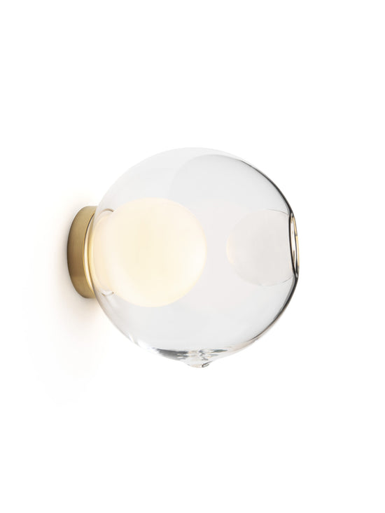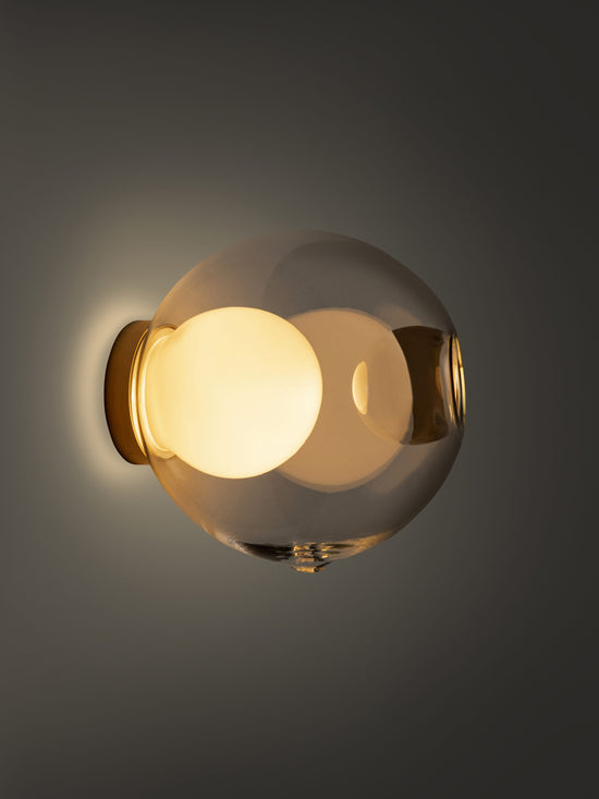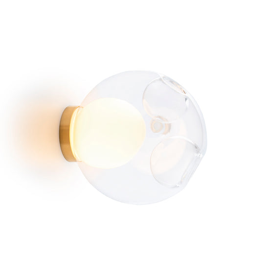 28s Brass is a single hand-blown glass pendant with a brass cylinder base, that can be wall or ceiling mounted.