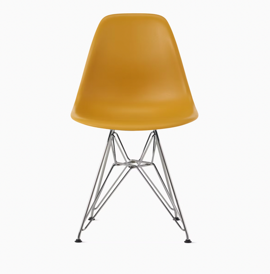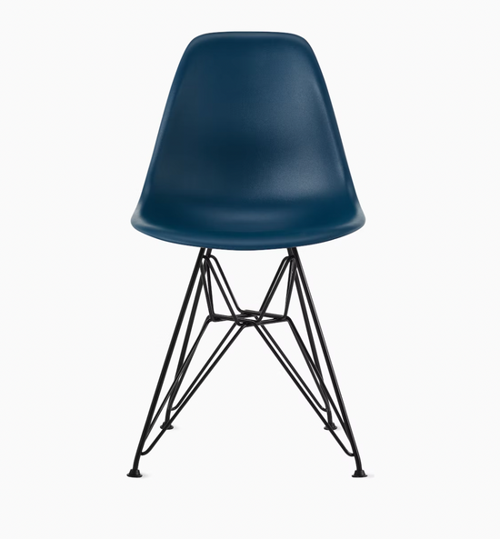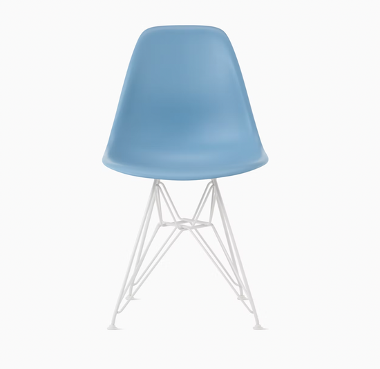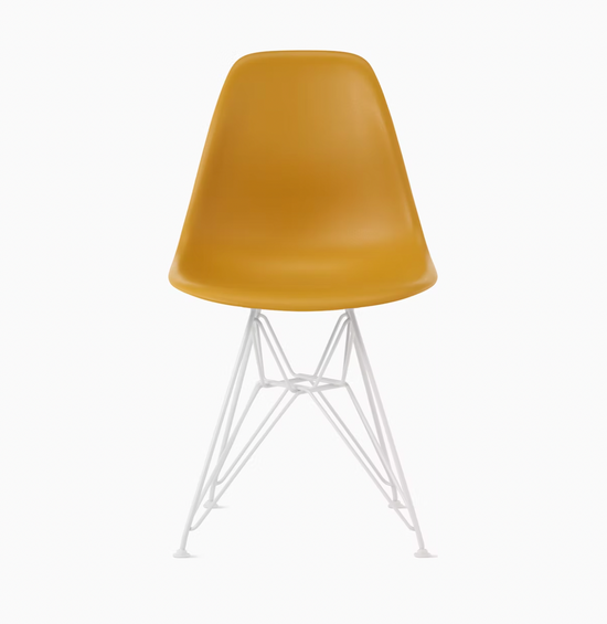Charles and Ray Eames adapted molding techniques developed during World War II to produce their classic shell chair’s simple, gracious form. In 2001, continuing the Eames’ design ethos of continual, iterative advancements, Herman Miller reintroduced the original Eames Molded Shell Chair (1950) in a durable, 100 percent recyclable polypropylene. In 2022, we’ve enhanced it once more by crafting select recycled chairs with 100 percent post-industrial recycled plastic. The subtle matte texture of the re-engineered plastic shell maintains the soft tactility of the original design, available in your choice of vintage and contemporary colours, with three leg materials and styles and levelling floor glides.