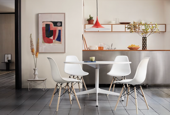 Modern Living — In the 1950s, the Eames molded shell changed everything about what a chair could be - sculptural, practical, mass-produced. Now in recyclable polypropylene, this staple of modern living fits every body and any space.