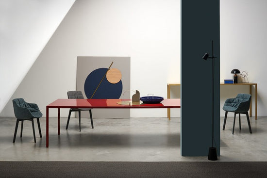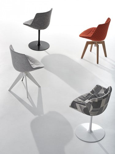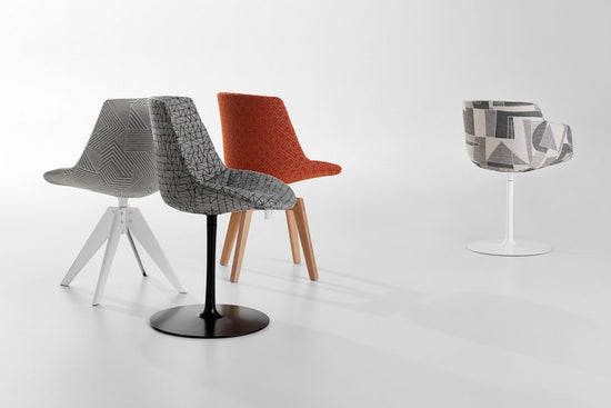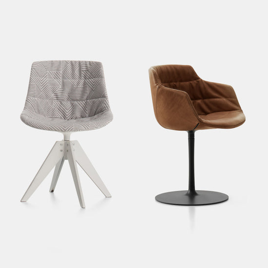 At Imm Cologne the iconic Flow collection is presented in a padded and completely upholstered version with a wide range of bases and finishes.