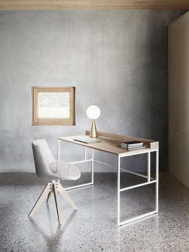 • 4-legged oak base: frame from transparent-lacquered natural oak solid wood with a natural, brown or bleached finish. 360° swivel.