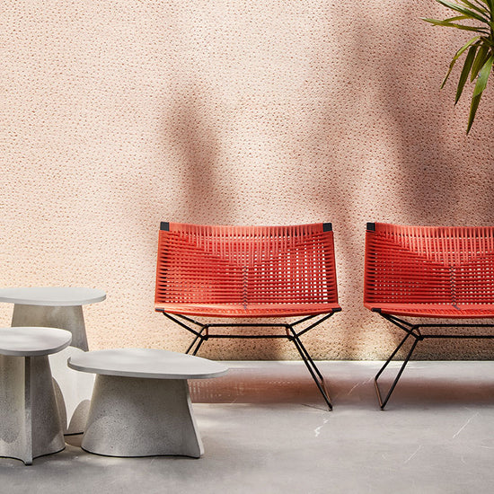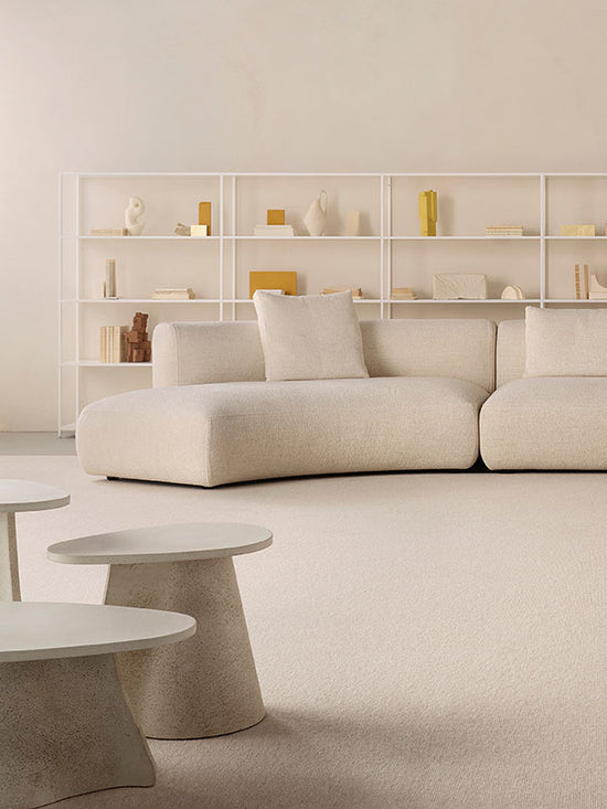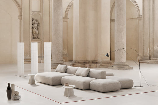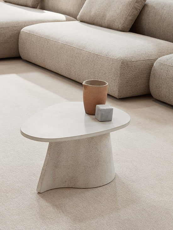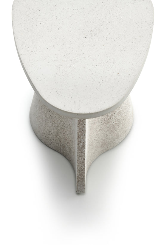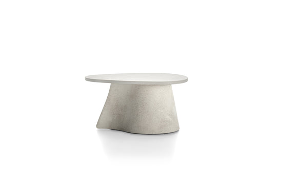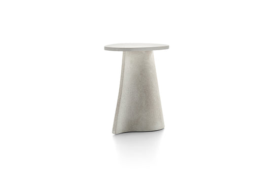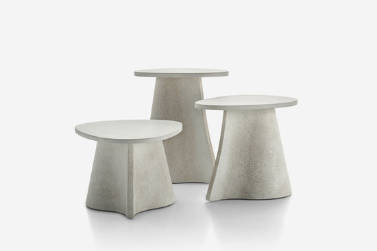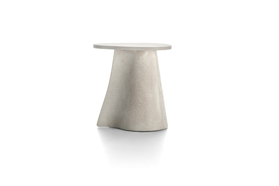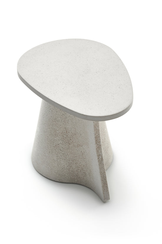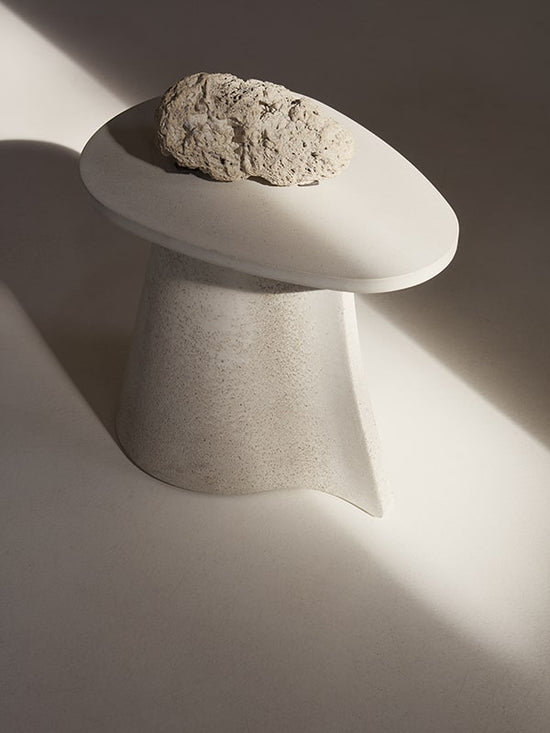 Built in lightweight concrete, and therefore usable indoors and outdoors, it has a delicate neutral finish that evokes the nuances of an organic and natural universe.