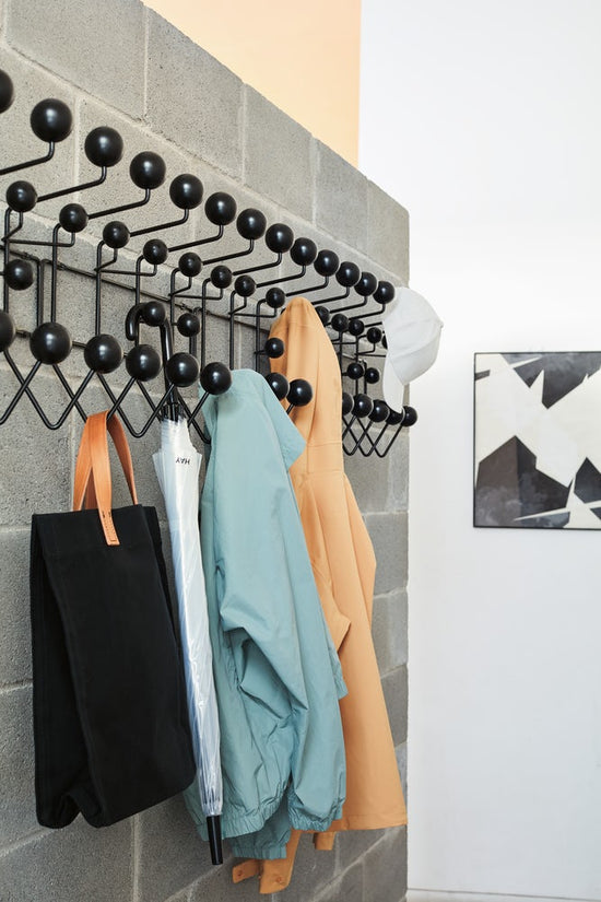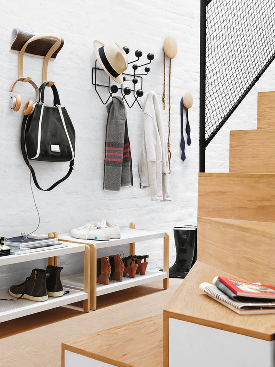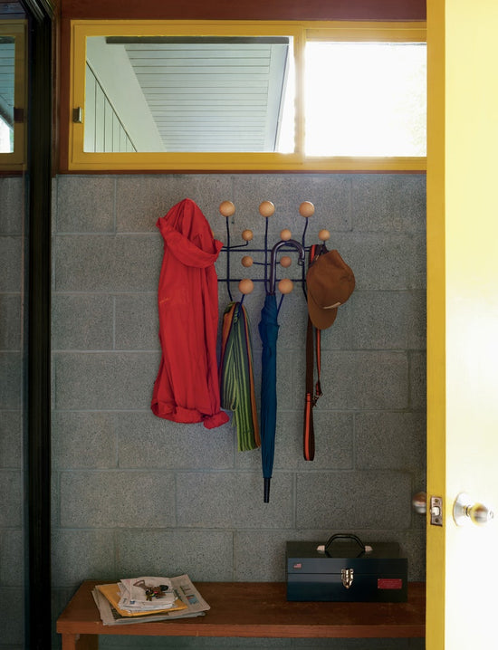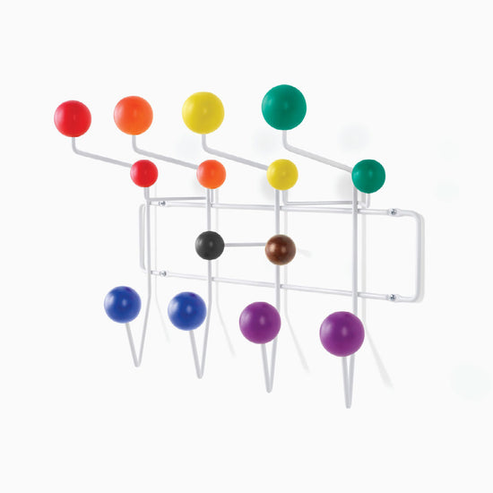 With their Hang-It-All, Charles and Ray Eames elevated the everyday coat rack into something inventive and fun. First crafted with multicolored hooks and a white wire frame, the material and colorway offering has since expanded with fidelity to the sophistication—and sense of play—of the original.
