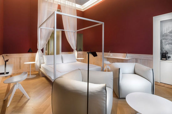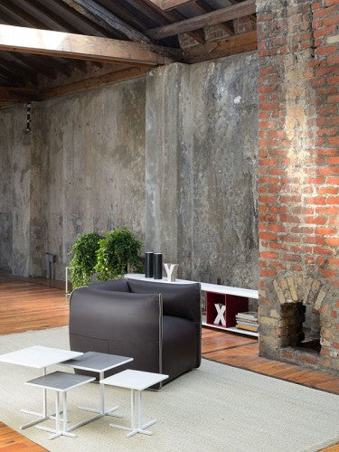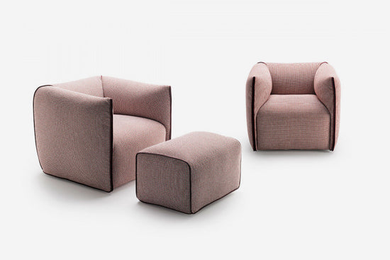 A compact, soft, comfortable armchair with a strong personality has joined the MDF Italia collection. The Mia soft design comes from the simple gesture of folding a cushion to create a nest - a shelter for relaxing moments. Mia collection is characterized by a soft compact armchair, sofas and pouf, with a strong character enhanced by its tone-on-tone or contrasting trim. The armchair is available with a fixed or with a 360° returning swivel base. The sofas, are integrating the collection offering three upholstered elements with smaller dimensions matching any ambient.