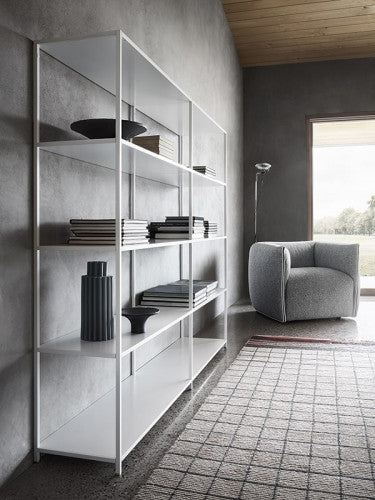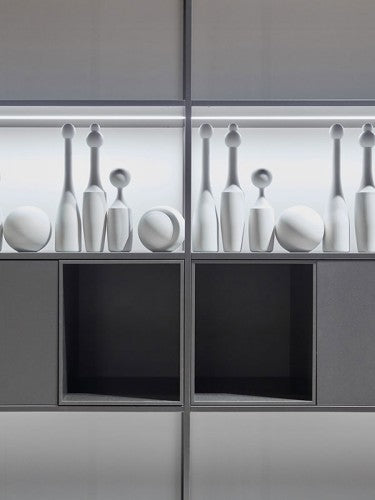 The new Minima 3.0 is divided into 5 types: GROUND-RESTING, HANGING, SKETCH, SIDEBOARD AND ROOM DIVIDER. In addition, for the ground-resting version, two new heights are available - 261.5 e 298 - and new shelves with LED lights integration.