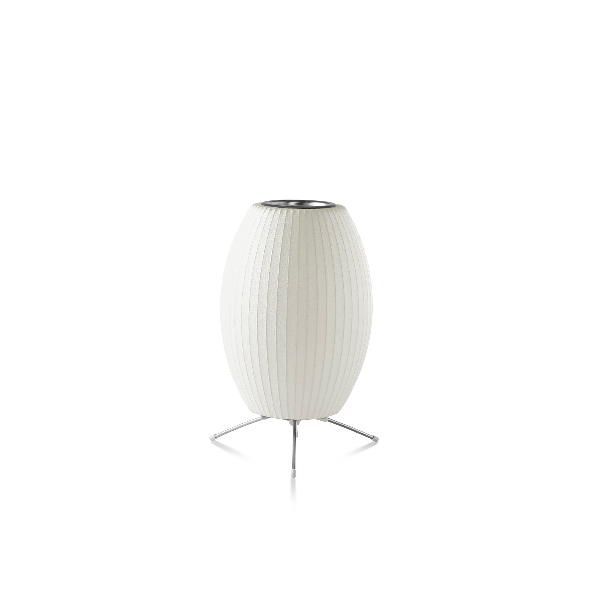 A compact George Nelson 1952 Bubble Lamp silhouette on a Tripod base. The translucent shade softens light for a warm, even glow.