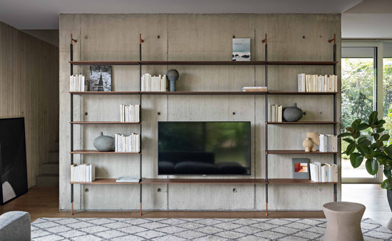Roll is a modular bookcase designed to furnish spaces with an architectural presence of reminiscent of the industrial style.