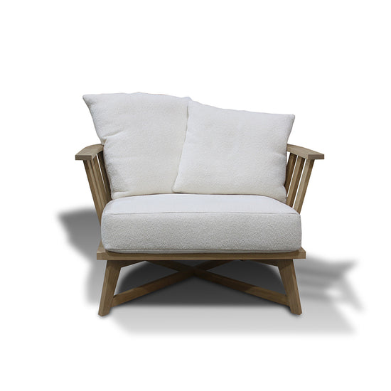 Discover the Simon armchair, a refined Italian interpretation of classic Scandinavian style. Its solid wood and veneer structure ensures uncompromising sturdiness, while the seat's foam padding guarantees optimum comfort. Back cushions, available in feather and down or microfiber, offer the ultimate relaxation experience.