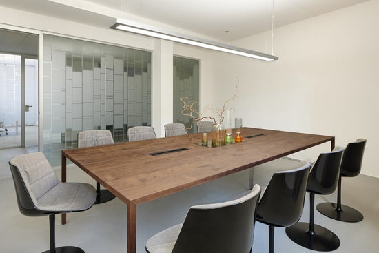The possibility to insert the top-access, the cable trays and its large size, make Tense Material suitable for workplaces, where meetings are so many and the need of accommodating more people around the table is frequent.