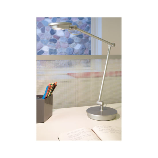 An accent light designed for flexible positioning, with a diffused LED and an adjustable form that helps focus light where you need it. A touch control cycles through full power, a dimmed setting, and off.